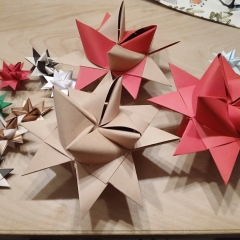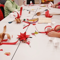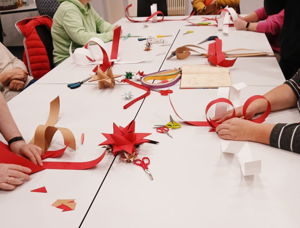 Viele Teilnehmerinnen, ein durchaus kniffliger Stern – und trotzdem herrschte von Anfang an eine wunderbar harmonische, fröhliche Stimmung. Es wurde gefaltet, wieder aufgemacht, gelacht, ausprobiert und gegenseitig geholfen. Schritt für Schritt wuchs dabei nicht nur der Stern, sondern auch der Spaß an der Sache.