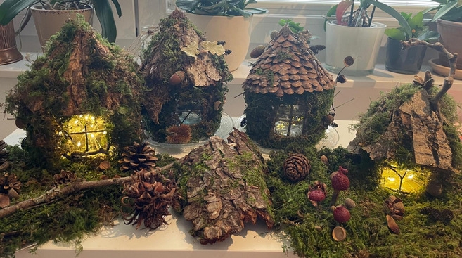 Neulich haben wir uns in kleine Wichtel-Zauberer verwandelt und aus alten Gläsern, Moos, Rinde und all den kleinen Naturschätzen, die man draußen so findet, wunderschöne Wichtelhäusle gebaut.