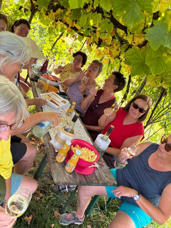 Am 27. Juni 2025 fand die 2. Ladies Shopping Night der LandFrauen aus Laufen im rustikalen Ambiente von Hof und Scheune des Weiguts Wolf / Greter statt.